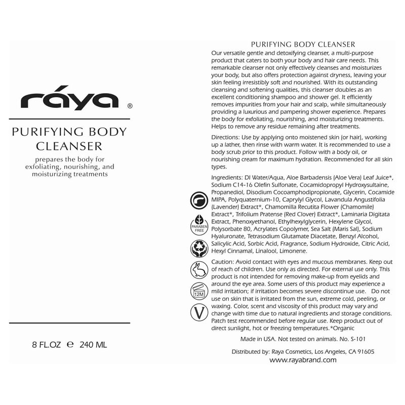 Raya Purifying Body Cleanser 16 oz (S-101) | Gentle Body Wash | Softens and Nourishes | Can Be Used as a Conditioning Hair and Scalp Shampoo | Great for All Skin