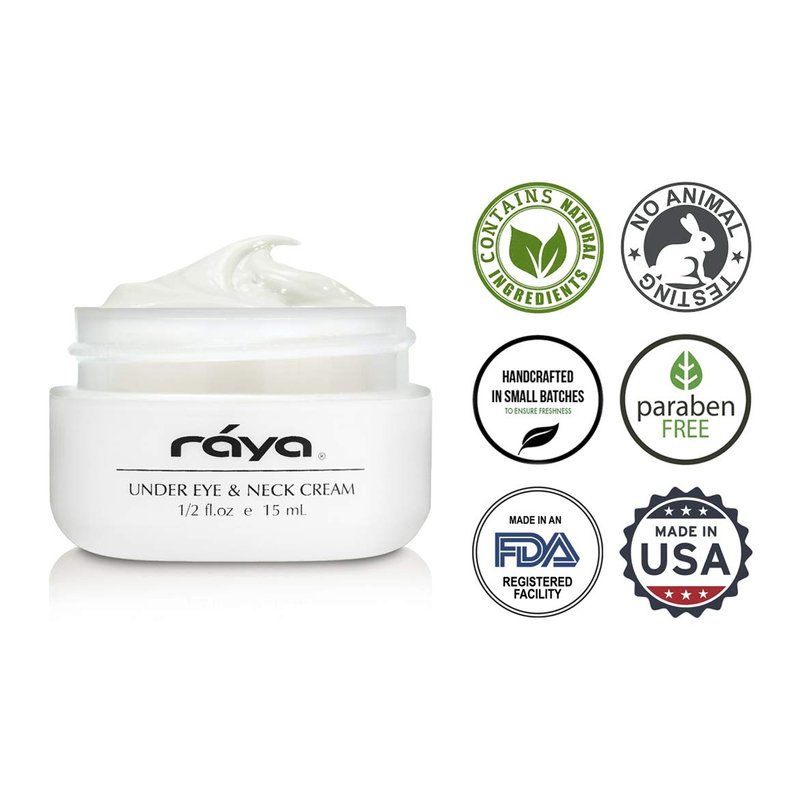 - Paraben-Free and Cruelty-Free: Rest assured, our RAYA Under-Eye & Neck Cream (408) is paraben-free, cruelty-free, and proudly made in the USA. It contains organic ingredients, ensuring a secure and efficient anti-aging treatment.