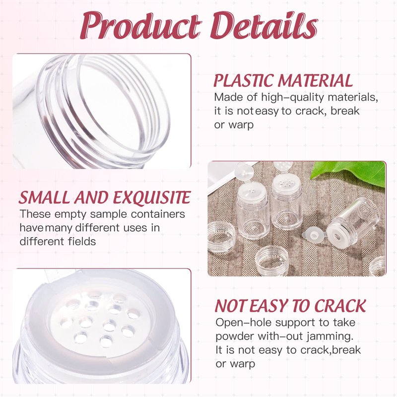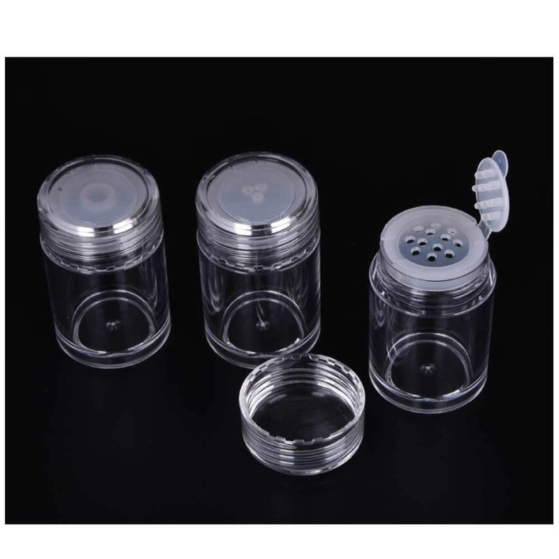 - The powder jar is made of the durable plastic with good quality; The lined screw cap can keep powder from spreading out.