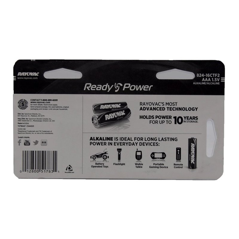 Rayovac 824-16ltj Aaa Alkaline Batteries [16 Pk]