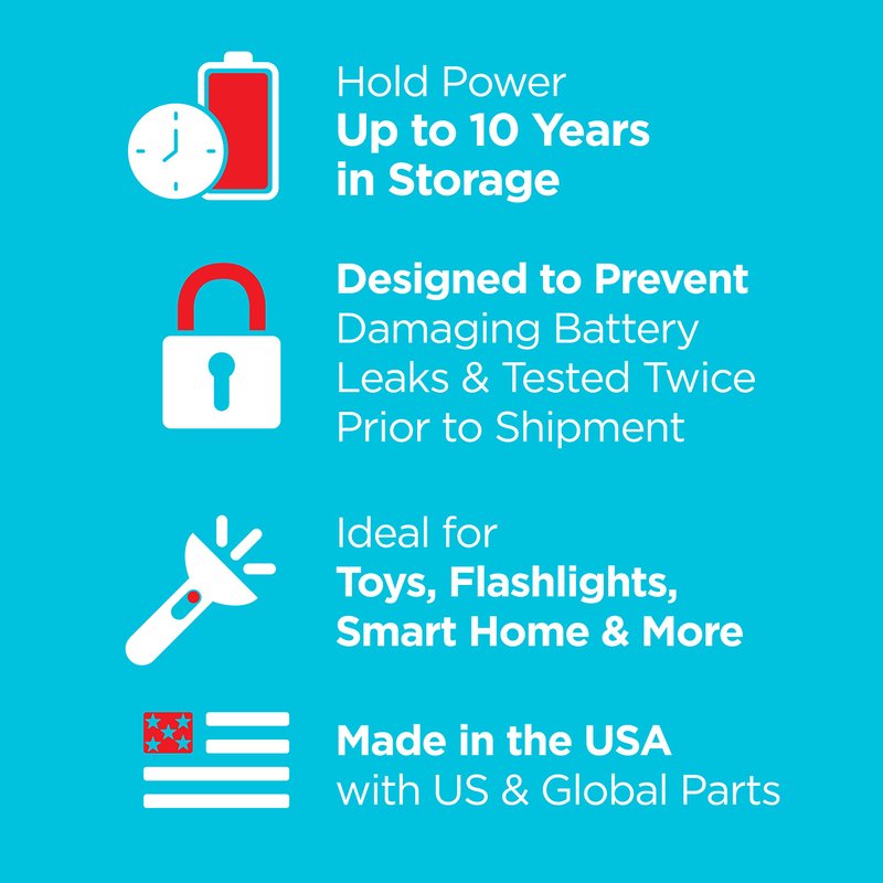 - Designed to Prevent Damaging Battery Leaks & Tested Twice Prior to Shipment