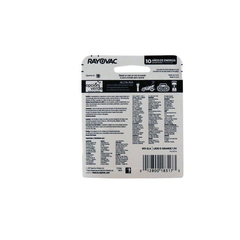 Rayovac D Alkaline Batteries, 813-2F, 2 Pack