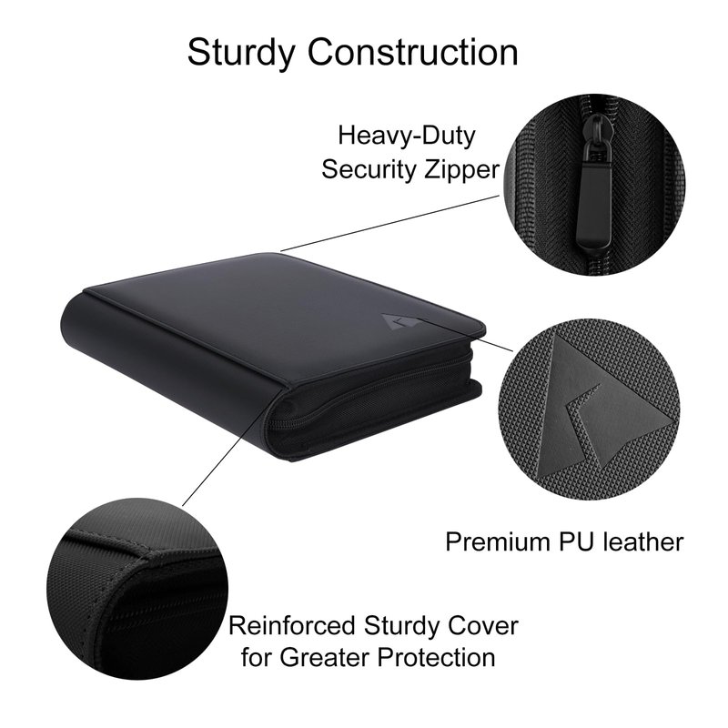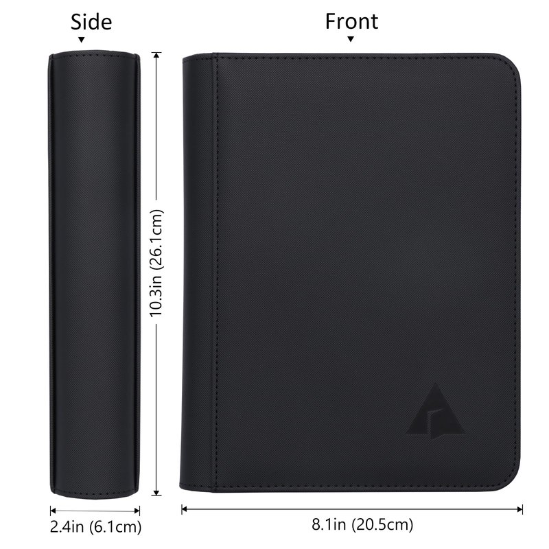 - Premium Pages: Made from archival-safe, acid-free non-PVC material. Double sided pockets with low-friction black backing, creating a separation between the front and back pockets, as well as providing cards a classic framed look.
