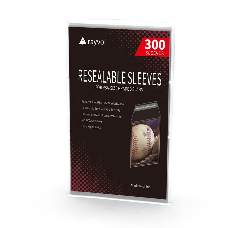 Rayvol Resealable Graded Card Sleeves for PSA-Sized Slabs, Exact Fit Sleeves Compatibile with PSA, CSG, CGC, FGS, FCG and Similar Sized Slabs(300pcs)
