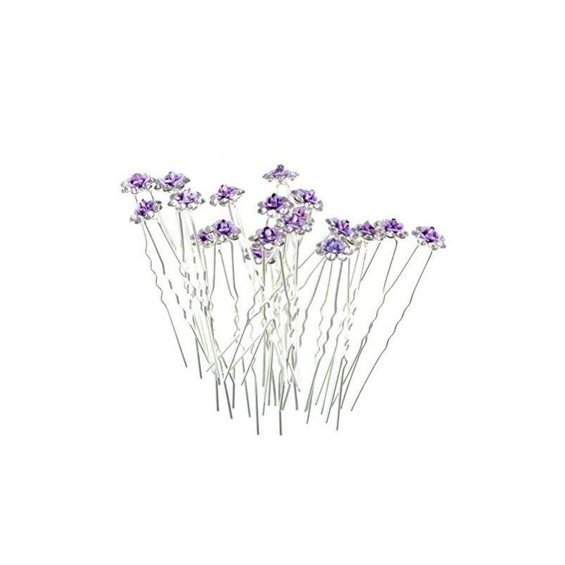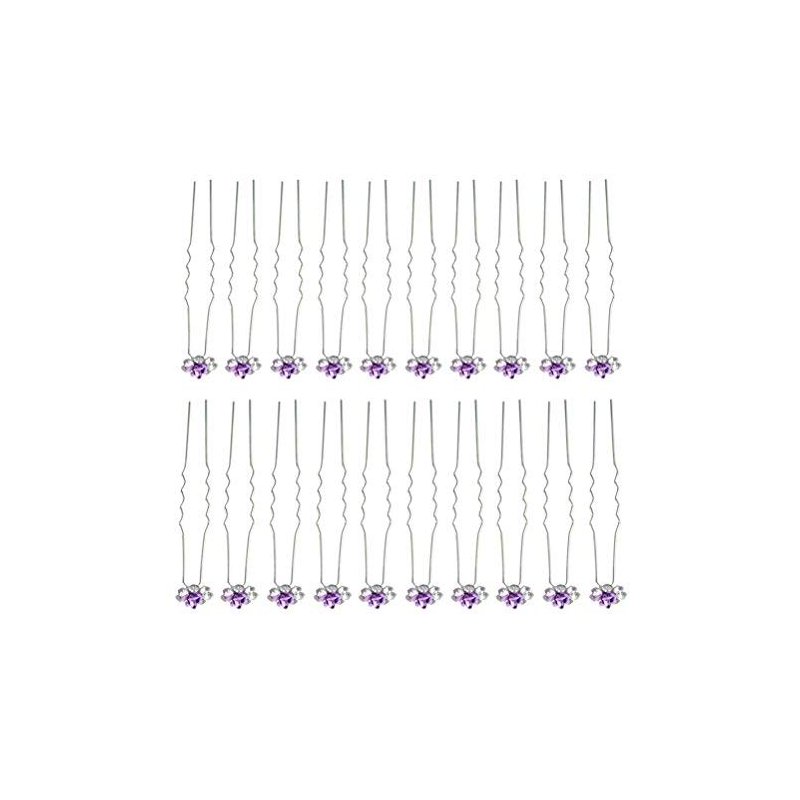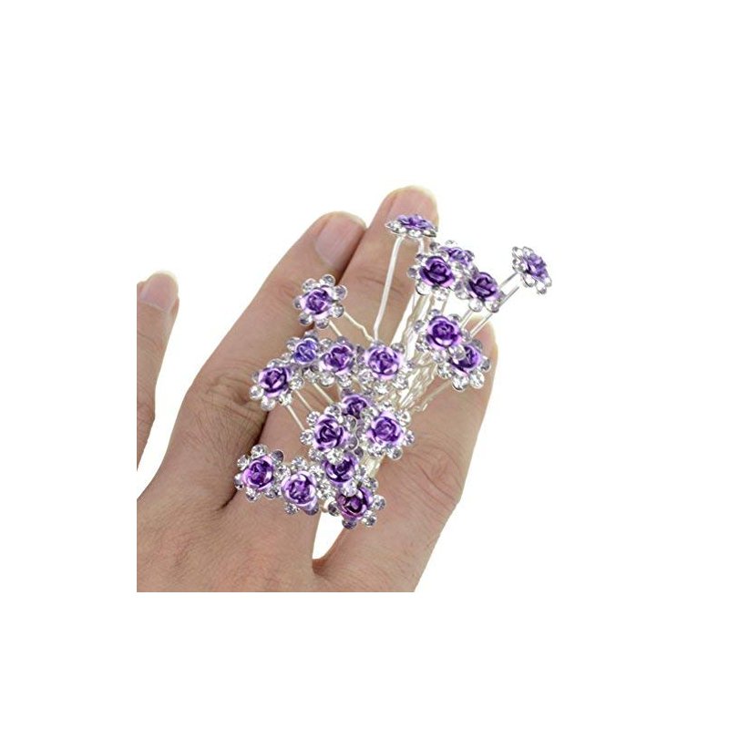 Rbenxia 20 Pcs Bridal Wedding Rhinstone Hair Pins hair Accessories Hair Sticks 2.4 Inches Bridal Prom Clips Rose U-shaped Hair Pins for Women and Girls, Purple
