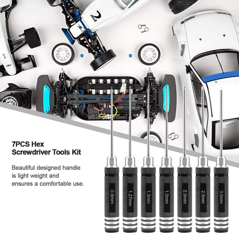 RC Hex Driver Set - 7pcs Hex Allen Screwdriver Kit 0.9mm 1.27mm 1.3mm 1.5mm 2.0mm 2.5mm 3.0mm Key Driver Repair Tools for Rc Car Traxxas Helicopter