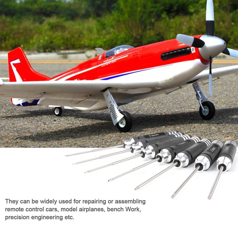 Features: 1.These Hex Screwdriver are made made of high quality , well processed by precision CNC. 3.This set contains total 7 pcs Hex Screwdriver in different sizes of 0.9MM / 1.27MM / 1.3MM / 1.5MM / 2.0MM / 2.5MM / 3.0MM Hex Screw included that meet your need. 4. Beautiful designed handle is light weight and ensures a comfortable use. 5.They can be widely used for repairing or assembling remote control cars, model airplanes, bench Work, precision engineering etc. Description: Product material: Steel Product size: 175mm/6.88 inch Product specifications: 0.9mm / 1.27mm / 1.3mm / 1.5mm / 2.0mm / 2.5mm / 3.0mm Product color: black