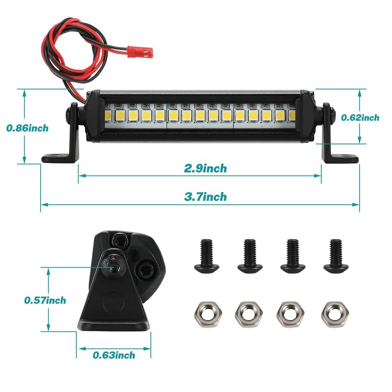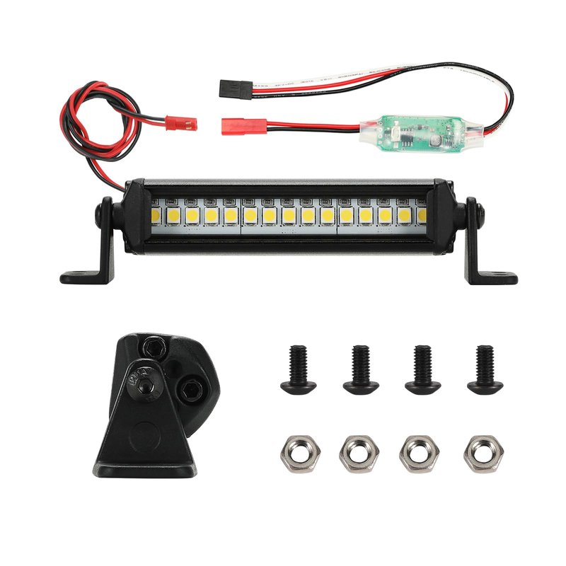 - 3.The LED light bar can be mounted on the roof for good lighting and balance, or on the hood for better protection in the event of a rollover. 4 screws and nuts are included to securely mount the light bar to the car, you will need to drill 4 mounting holes in the car shell. It can also be attached to the roof rack with cable ties.