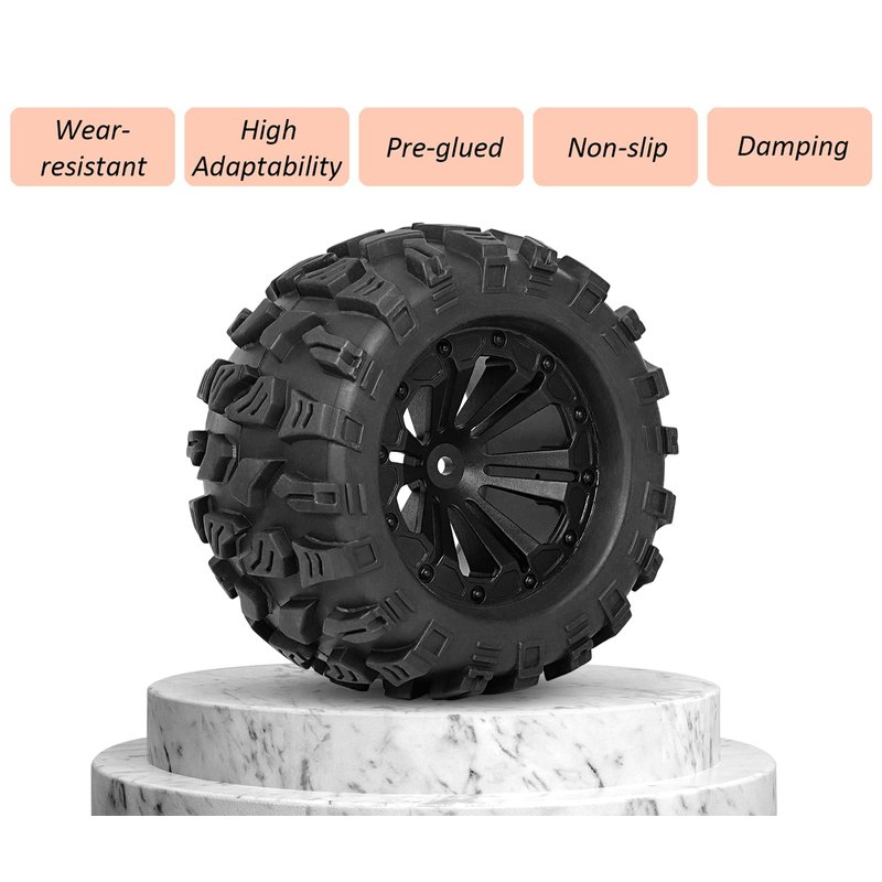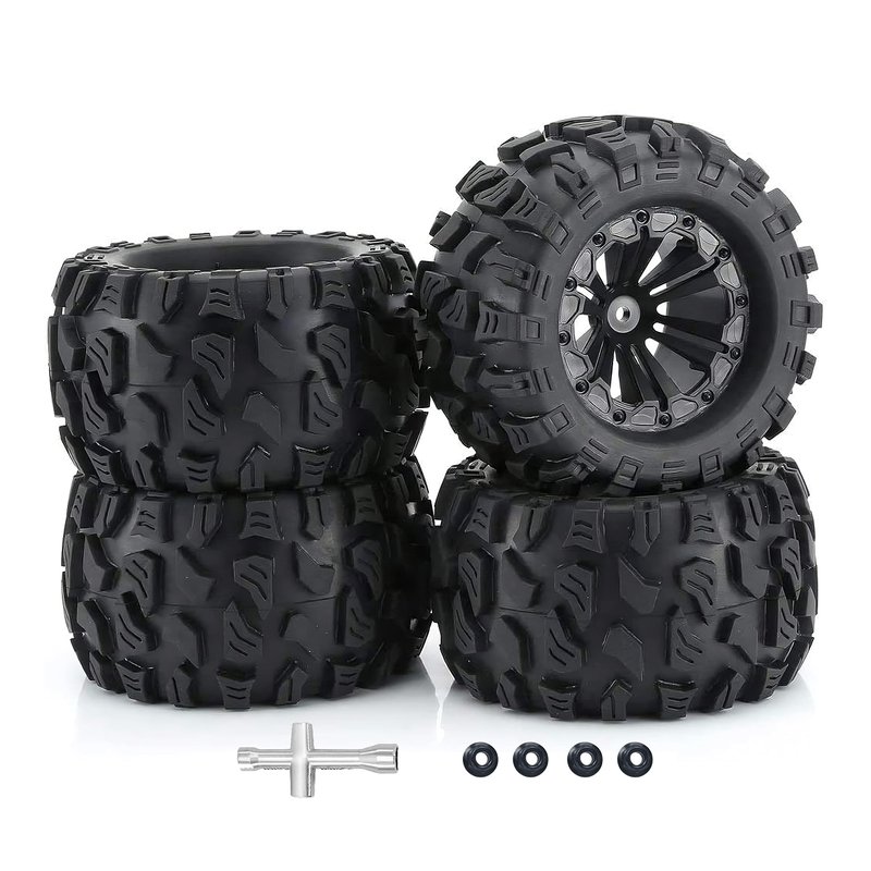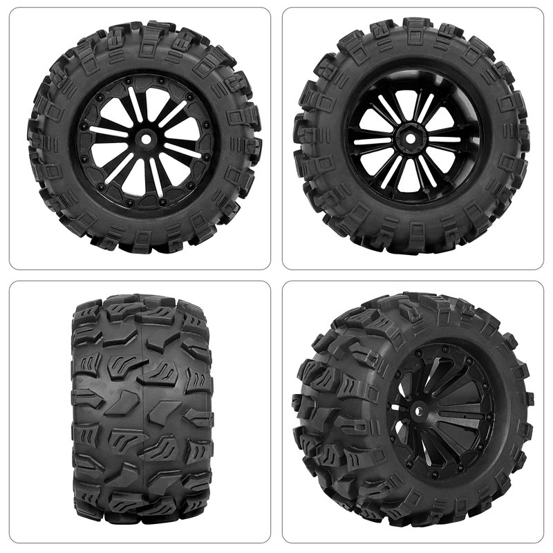 - ๐๐Product Compatibility: These RC wheels and tires 1/10 Scale 12mm hex are designed to fit the majority of 1/10 Scale RC racing cars that also use a 12mm hex, It's Compatible with Traxxas Rustler 2wd 4x4 VXL tires and Wheels, It's Compatible with Traxxas Stampede 2wd 4x4 VXL tires and wheels, It's Compatible with Traxxas Hoss 4X4 VXL Tires and Wheels, Compatible with Redcat Volcano Epx S30 Blackout XTE RC Truck tires and wheels.