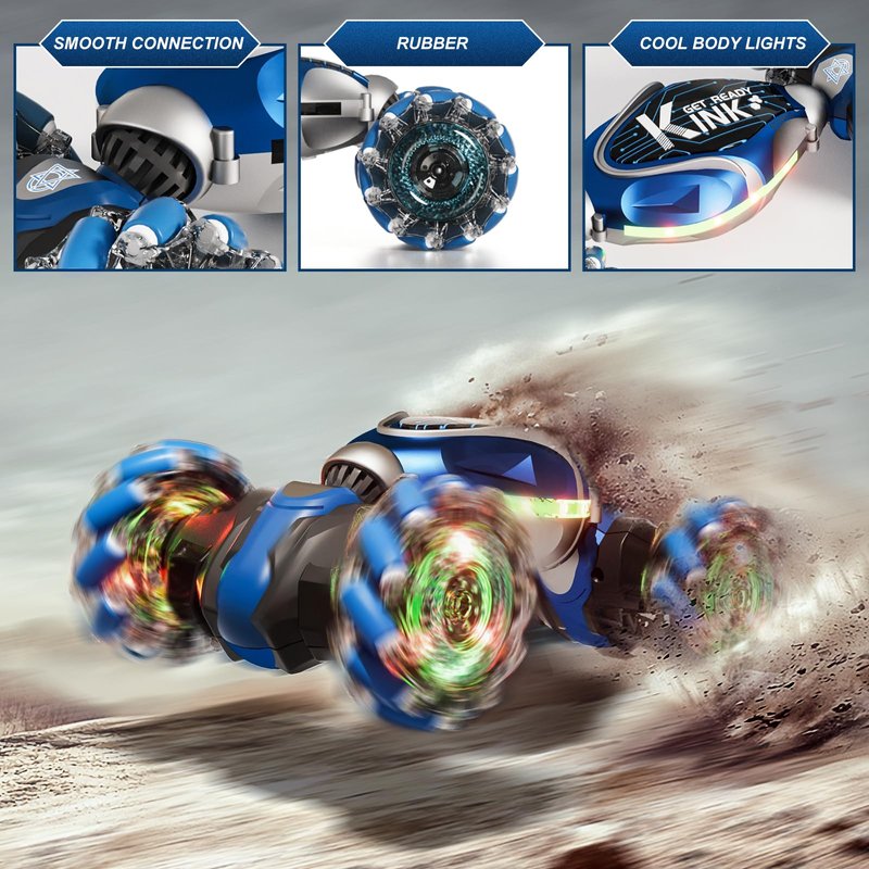 - 4WD Rotating Toy Car: Featuring powerful 4WD motors, this car can move forward, backward, turn, drift, and perform 360° rotations, all with ease. It's easy to control and comes with an automatic demonstration feature, providing kids with driving fun and stunt performancess