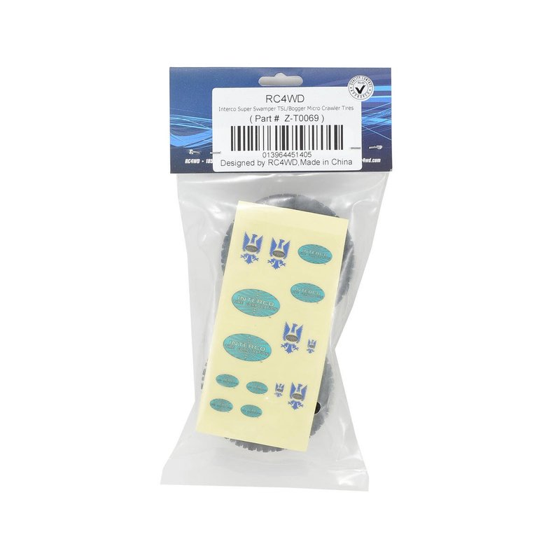 Key Features: Advanced X3 Soft & Sticky Compound Designed to fit Losi Micro Crawler or RC4WD Micro Crawler wheels Shown mounted on RC4WD Losi Micro Crawler Beadlock Wheels (Not Included) Overview:Specifications: Inner Diameter: 1.00" (25.5mm)Outer Diameter: 1.98" (50.5mm) Width: 0.78" (20mm) What's Included:2x Interco Super Swamper TSL/Bogger Micro Crawler Tires2x Foam insertsInterco sticker sheetInterco is a registered trademark of the Interco Tire company. The Interco logo is property of Interco Tire Company.