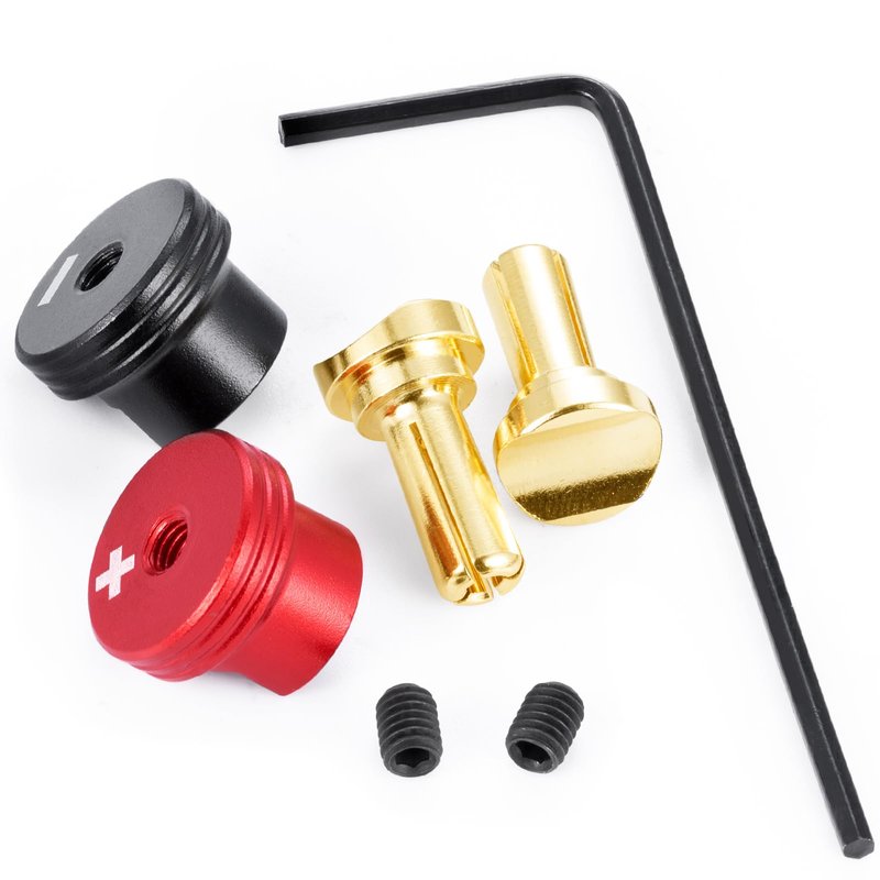 - 【Package contains】1 red positive & 1 black negative battery connector plugs with heat sink housings, 2 x screws, and 1 x Wrench.