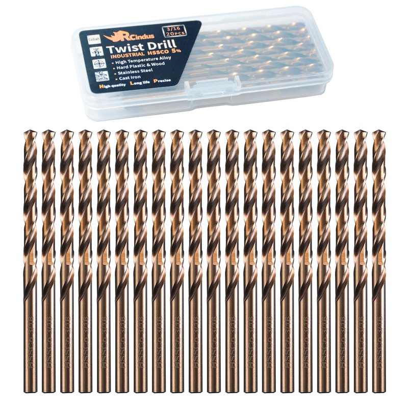 RCINDUS (20PCS) 3/16" Cobalt Drill Bit, HSS M35 Metal Drill Bits for Steel, Stainless Steel, Cast Iron, Hard Plastic and Wood