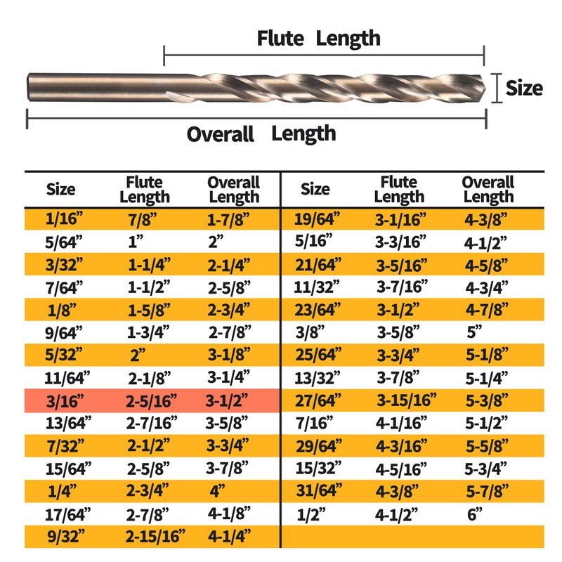 [3/16inch 20PCS] A pack containing 20 pieces 3/16-inch(Dia 4.763mm) cobalt metal drill bits comes in plastic storage case for easy storage.[Cobalt 5% HSSCO] Industry grade M35 High Speed Steel, containing 5% cobalt. The drill bits are harder than HSS and can drill hard metal such as stainless. More wear resistant, longer life.[135° Self Centering] 135° Split-point provides better automatic centering and prevents walking on the hard surface you are working on.[Wide Application] Ideal for Hardened Metal, Stainless Steel, Cast Iron, Plastic, PVC Board and Wood, etc.[High Quality] Directly operated by the factory. Real M35 material goes through more than a dozen processes, Including full grinding and hardening. Diameter accuracy is controlled within -0.03mm. We care about your satisfaction, Any problem please contact us for a full refund or replacement.