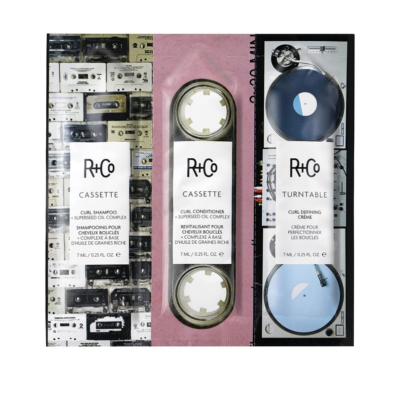 R+Co Curl Trio- Cassette Shampoo/Conditioner + Turn Table Cream | Tames Frizz + Hydrates Curls + Adds Shine | Vegan + Cruelty-Free | .75 Oz