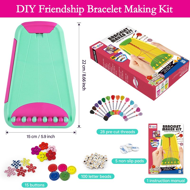 Empowering Creativity: Kids can weave their imagination into every friendship bracelet, fun and creative friendship bracelet maker. Our easy-to-use bracelet making kit empowers them to explore endless combinations of colors and patterns, sparking their creativity and self-expression. Allowing kids to personalize each friendship bracelet to reflect their unique style and personality