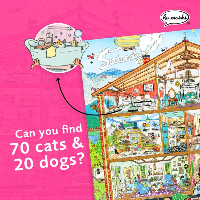 - SWEET HOME PUZZLE: This architecture puzzle features bright colors and a wonderfully artistic design. With lively graphics of a busy home, this jigsaw puzzle is sure to make you smile. Explore each room of this house to learn more about the people who live in it. Enjoy finding the 70 cats and 20 dogs who call this house their home as well.