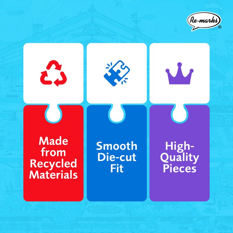 Re-marks is a company with a triple bottom line: People. Planet. Profits. We believe that there is no end to the demand for fun, tactile, and inspiring designs that encourage time away from digital clutter. We pride ourselves on giving personalized responses to our customers and using resource-efficient materials to create high-quality puzzles. Our puzzles feature excellent colors and have the appearance of fine art, and we use powerful machinery to ensure crisp edges for each puzzle piece, allowing our pieces to fit smoothly in place. Each of our puzzles also comes with a sturdy reusable puzzle storage box and a mini poster of the puzzle image to aid in assembly.