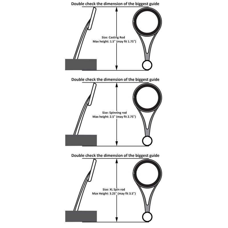 - Perfect Width - “CASTING” rod size is approximately 1.25” wide; “SPINNING” rod size is approximately 2” wide; “XL SPIN” size is approximately 2.5” wide. All sizes expand to fit most common rod sizes but check the size chart in the pictures to be sure your selection will fit