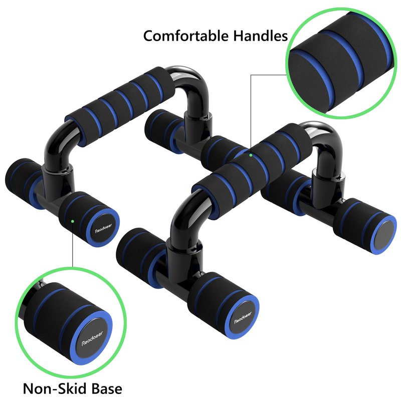Readaeer Push Up Bars Gym Exercise Equipment Fitness 1 Pair Pushup Handles with Cushioned Foam Grip and Non-Slip Sturdy Structure Push Up Bar for Men & Women (Blue)