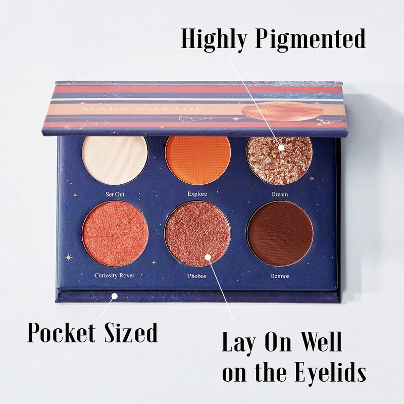 - ❤️HIGHLY PIGMENTED: The Mars Voyage palette includes six vibrant shadows that make your eyes pop with the perfect mix of silky matte neutrals and vivid shimmers.