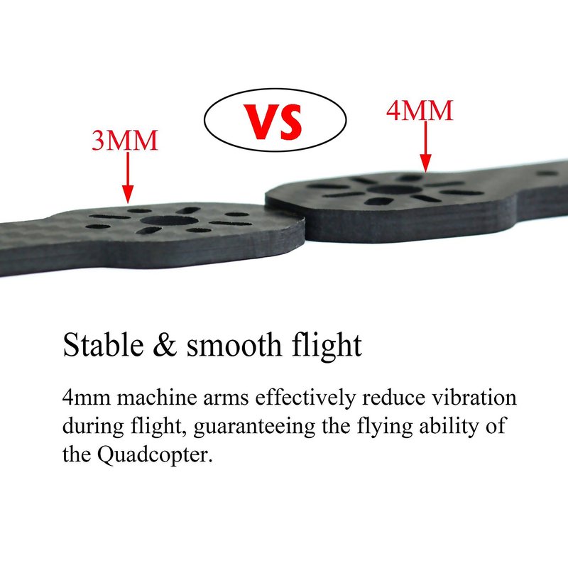 • ★Smooth - Super strong & smooth flight: 1.5mm full carbon fiber fuselage and 4mm frame arms effectively reduce vibration during flight, guaranteeing the flying ability of the Quadcopter.