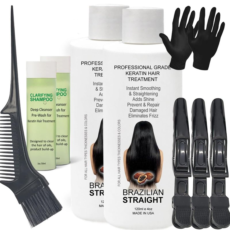 Real BRAZILIAN STRAIGHT Keratin Straightening Treatment Kit Pro Result Keratin Protein Arganoil Collagen Amino Acid Straight shiny Hair Salon Results Lasts 3-9 months All Hair thicknesses, colors 8oz