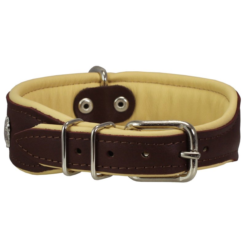 Real Leather Soft Leather Padded Dog Collar Bulldog (15"-17.5" Neck; 1.75" Wide, Brown/Beige)