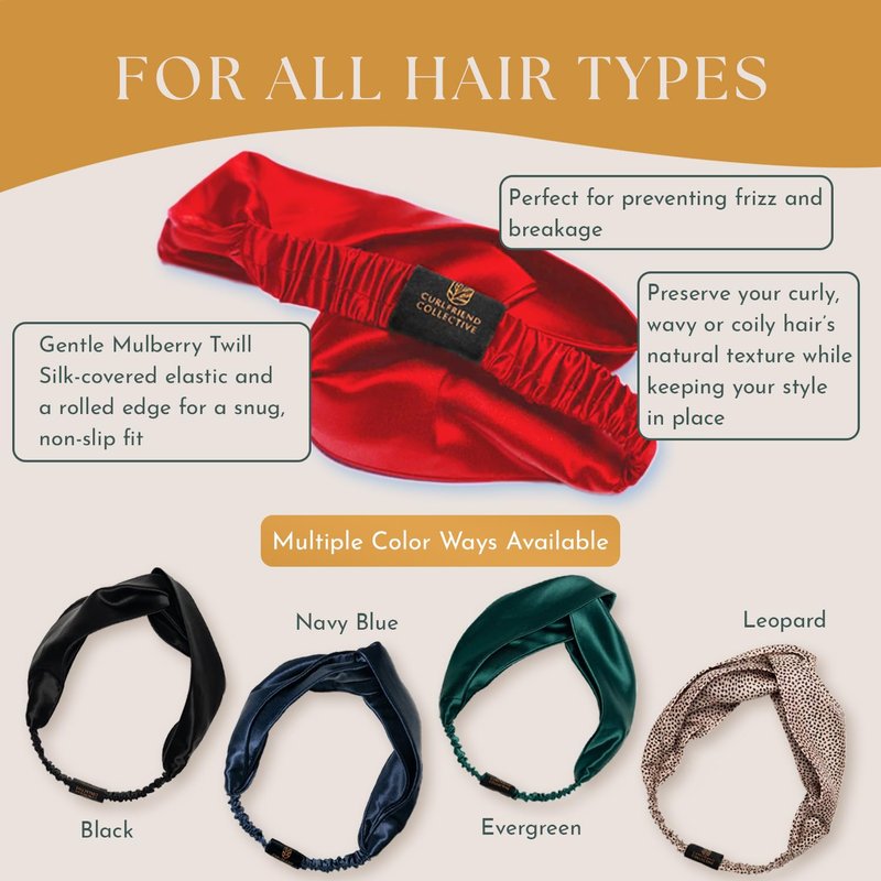 Experience the perfect blend of style and functionality with Curlfriend Collective's Mulberry Silk Headbands. Tailored for thick, curly hair, these headbands come in elegant prints and colors, offering a gentle, secure hold without damaging your curls. Ideal for sleeping or face washing, they fit all sizes and stand out for their safety and quality. Trust in the care from a female-founded brand that knows curly hair.