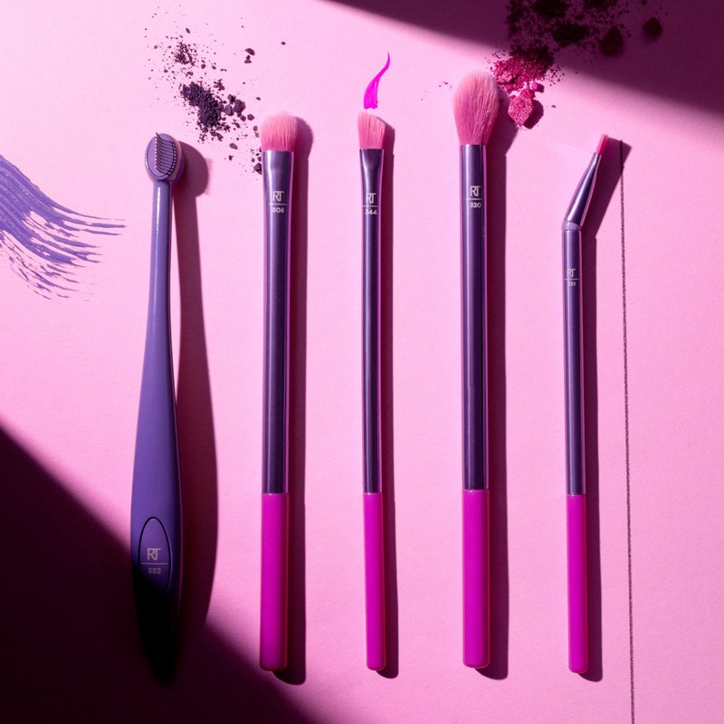 - The Real Techniques Eye Love Drama Makeup Brush Kit includes (1) RT 320 blending brush, (1) RT 306 instapop crease brush, (1) RT 344 wing liner brush, (1) RT 351 tight liner, and (1) RT 352 lash definer brush
