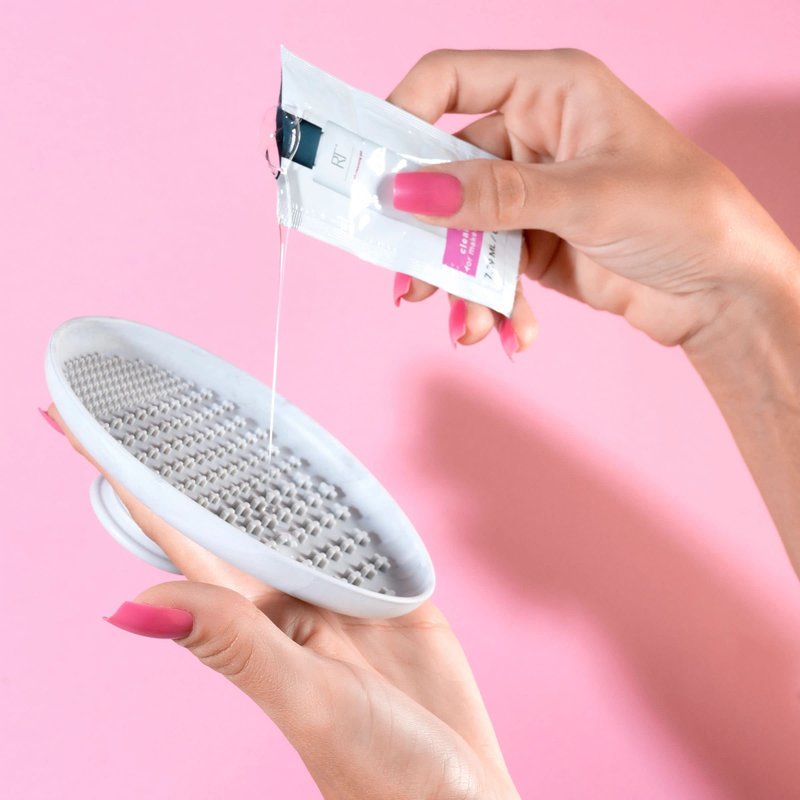 - Set includes: (1) Cleansing Palette and (2) Packets of makeup brush shampoo and cleanser