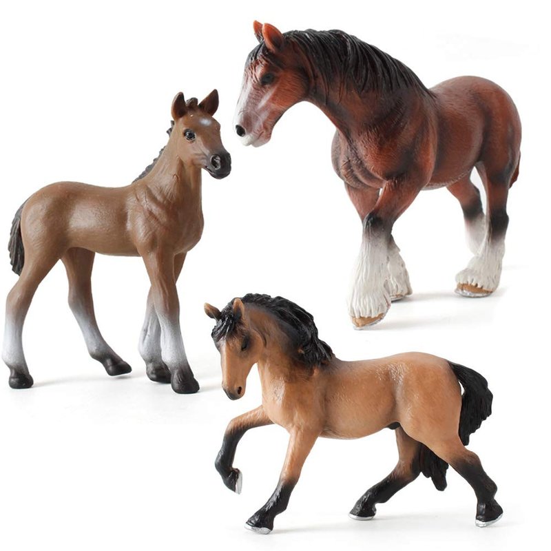 Realistic 3 PCS Horse Farm Animal Figures Model Figurines Family Party Supplies Collection Desktop Decoration Development Set Cognitive Toy for Boys Kid Toddlers