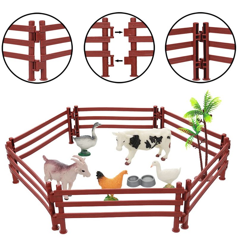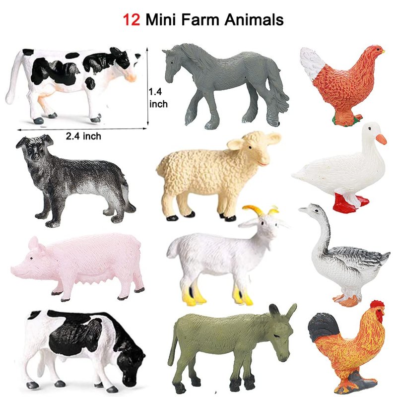 - Family Farm Animals Toy Set: The farm animal figurines playset includes 27 Animals (12 Pcs 4.5-5.8 inch farm animals, 15 Pcs 1.5-2.5 inch mini farm animals), And 17 Farm accessories (10 Pcs Fences, 5 Pcs Feeding trough, 2 Pcs Trees). You will use these animals element (Pig, Dairy cow, Goat, Sheep, Cock, Chicken, Duck, Goose, Horse, etc.) to build a fun imaginary farm