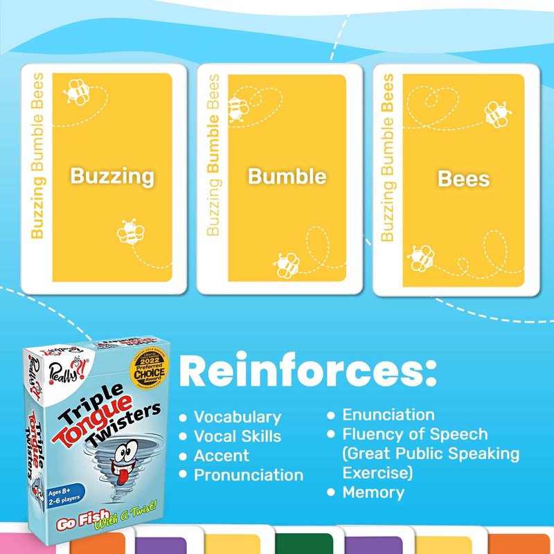 - FUN LEARNING GAME FOR FAMILY & FRIENDS: Play the award-winning tongue twister card game & improve your English while practicing pronunciation, enunciation, accent, memory & more. Super fun speech therapy games by Really?!.
