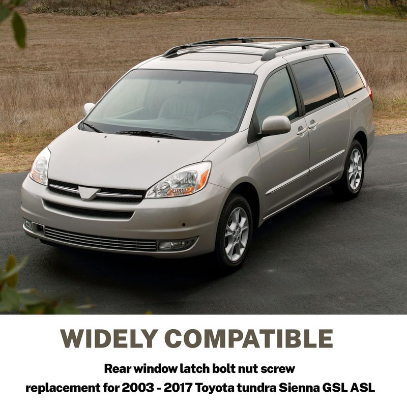 - Fits 2003-17 Toyota Rear Window Latch: The rear window latch nut screw is used to repair or replace the Sienna rear window glass lock to ensure the stability and safety of the rear window glass, prevent rain, dust and wind noise from entering the car, and improve driving comfort and safety.