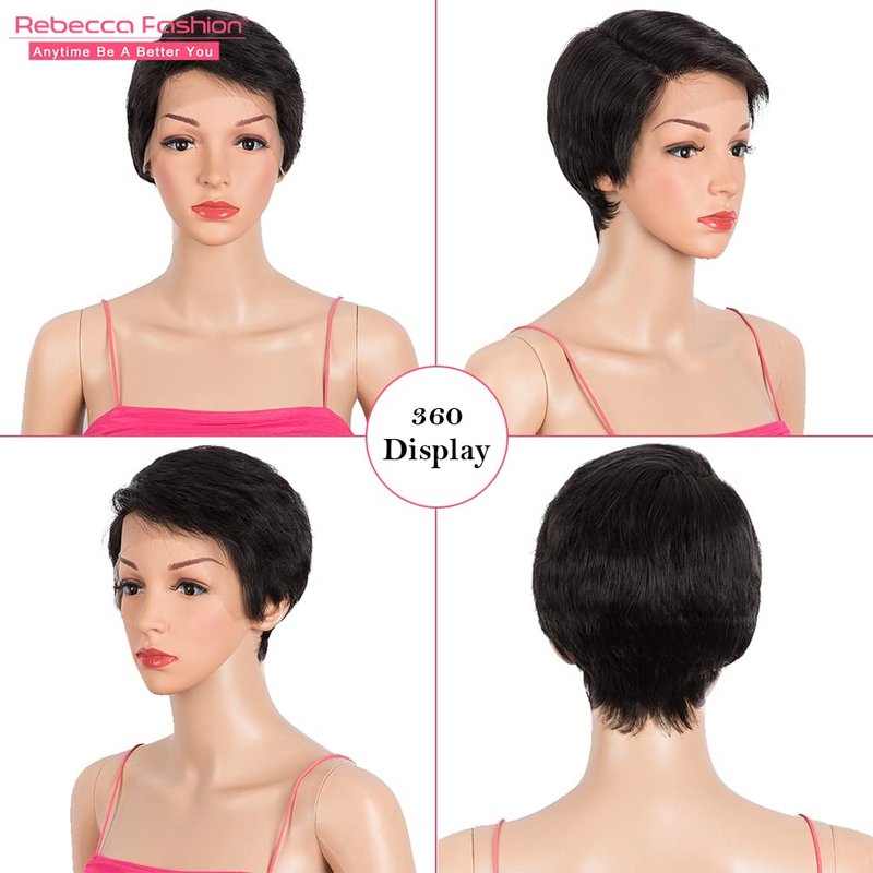Rebecca Fashion Short Pixie Cut Lace Front Wigs Human Hair Side Part Wig 13x5.5x0.5 Glueless HD Lace Wig Short Pixie Wigs for Black Women Pre Plucked with Baby Hair, Natural Color