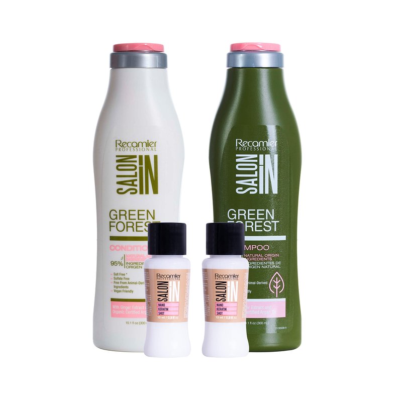 Salon In GREEN FOREST Shampoo and Condition + 2Nano gently and naturally cleans all hair types. Its revolutionary formula contains certified organic Argan Oil that provides deep nutrition and revitalizes the hair fiber. Ginger Extract that strengthens and hydrates the scalp, restoring the natural balance of the hair. Leaves hair clean, soft and healthy. Made under an ISO 14001 certified production process with 95% ingredients of natural origin.
