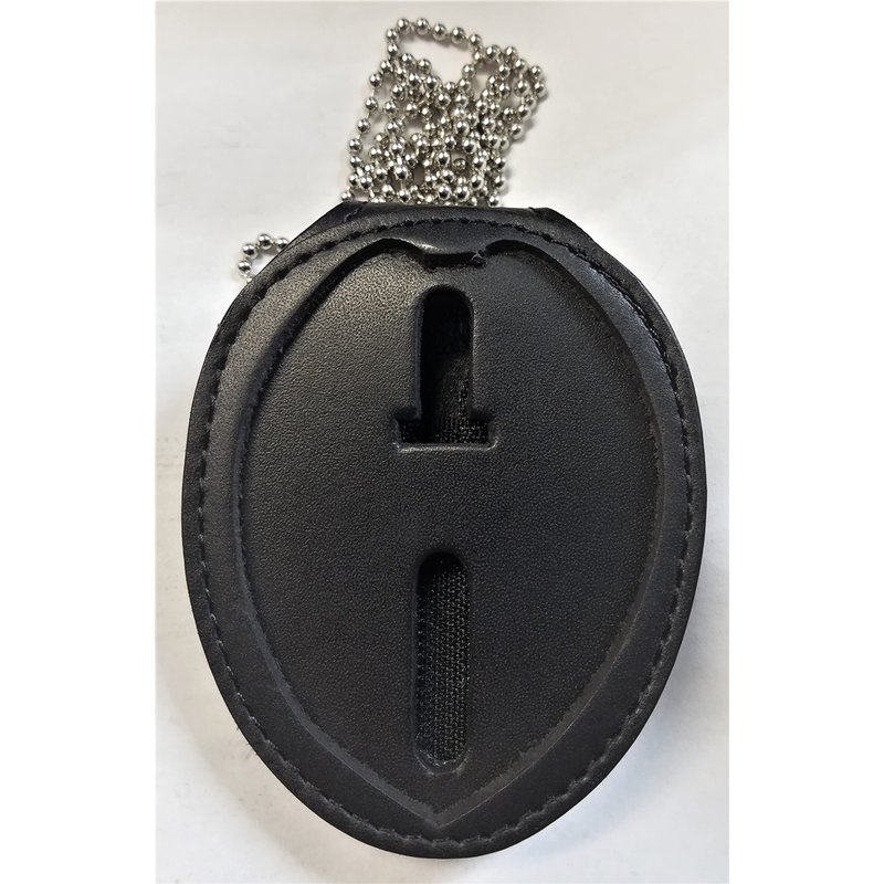 Recessed Oval Badge Holder, Hook Closure, Metal Clip (with Neck Chain) from Uniform World