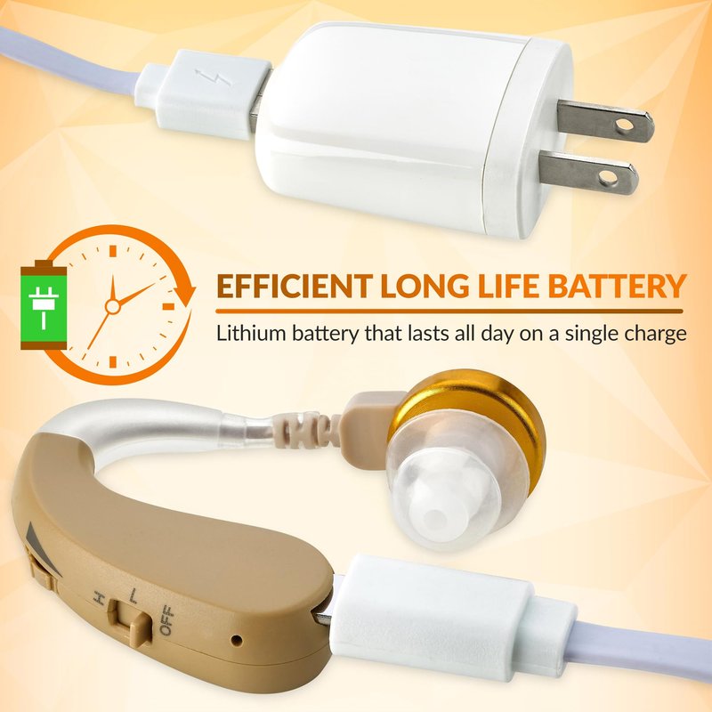 - STOP CHANGING YOUR HEARING AID BATTERIES ALL THE TIME: Picture yourself using a personal hearing amplification device that is simple, user-friendly and rechargeable. You'll love the high quality rechargeable battery that will literally lower your lifetime replacement battery expenses in the long run because now you wont have to worry anymore.