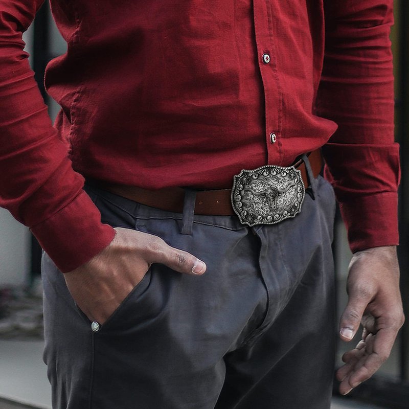 - Cowboy Belt Buckle:One order includes two different styles of mens bull head belt buckles, one oval with turquoise bead decor and one square with floral engraving decor, these native america belt buckles feature mainly a classic bull head,the eye-catching design makes it a great choice for any occasion. It will instantly upgrade your look and make you stand out from the crowd. Perfect for any cowboy or men looking to add a touch of the wild west to their outfit.