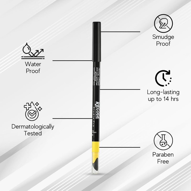 Recode Turning Heads Crayon Gel Eyeliner Pencil comes with Smudger on other side, longlasting, Water-proof & smudge-proof Formula, Black, 1.2gm