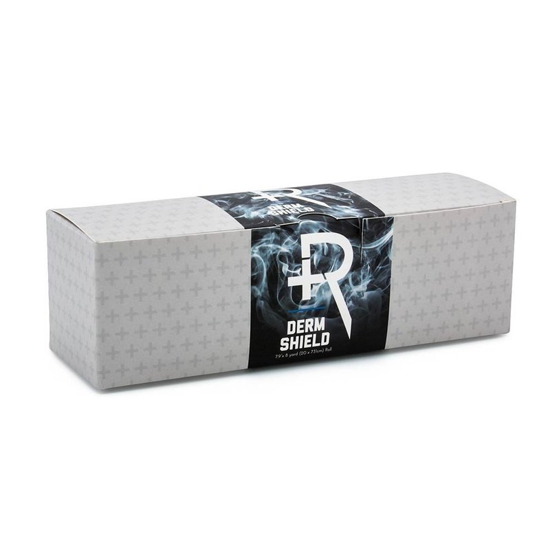 - TATTOO BANDAGE SHIELD – The Derm Shield adhesive bandage roll measures 7.9 inches x 8 yards. It can be cut and trimmed to fit any size tattoo.