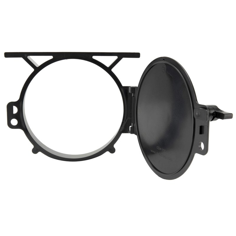 • This replacement hatch door and bracket measure 6” wide by 6” high by 2” deep and are made of durable plastic. The black color fits with the under-mount Super Tube body and is sized to fit the ends of the tube (not the center).