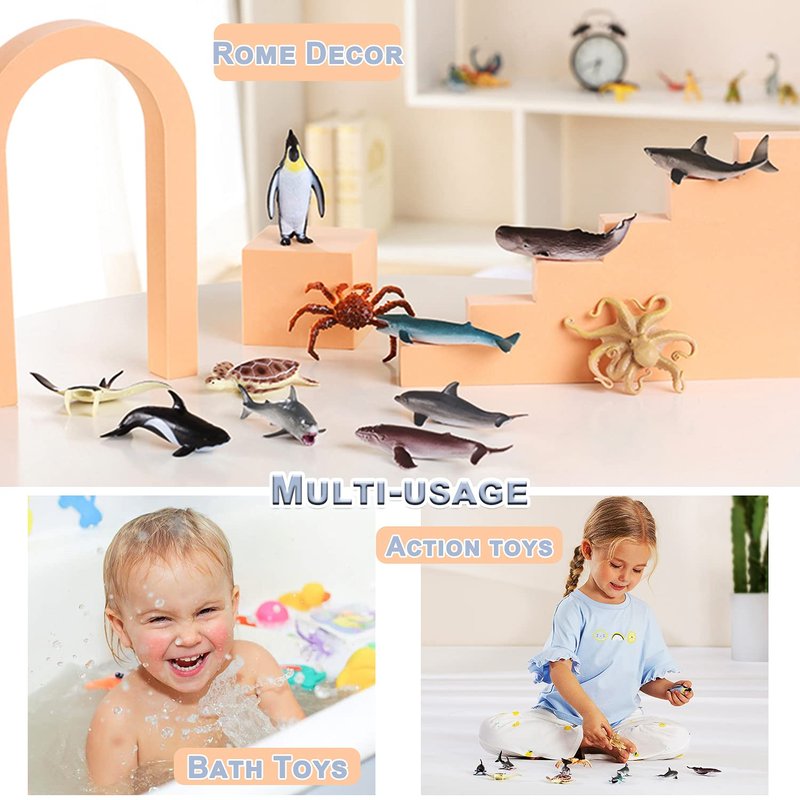 - 【Eco-Friendly Material & Safe Sea Animal Toy Figures】All plastic sea animal toy pack 100% safe for kids since we know kids safety comes first. ASTM/EN71/CPSIA/CE/CPC certificated. Non-toxic, BAP free. [SAMLL PARTS, NOT SUIT FOR KIDS UNDER 3 YEARS]