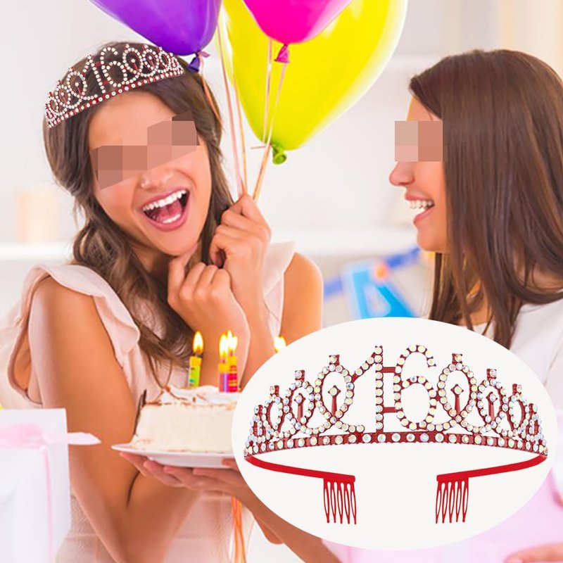 - 【Package】: 1 x "It's my 16th birthday" Sash, 1 x Rhinestone Crown, 1 x Pin.