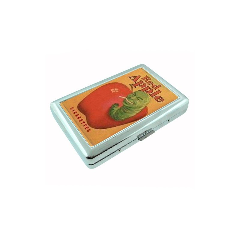 Red Apple Cigarette Green Worm Metal Silver Cigarette Case Holder Box D-021
