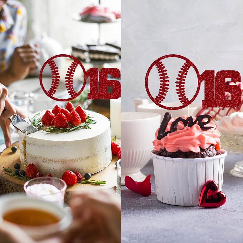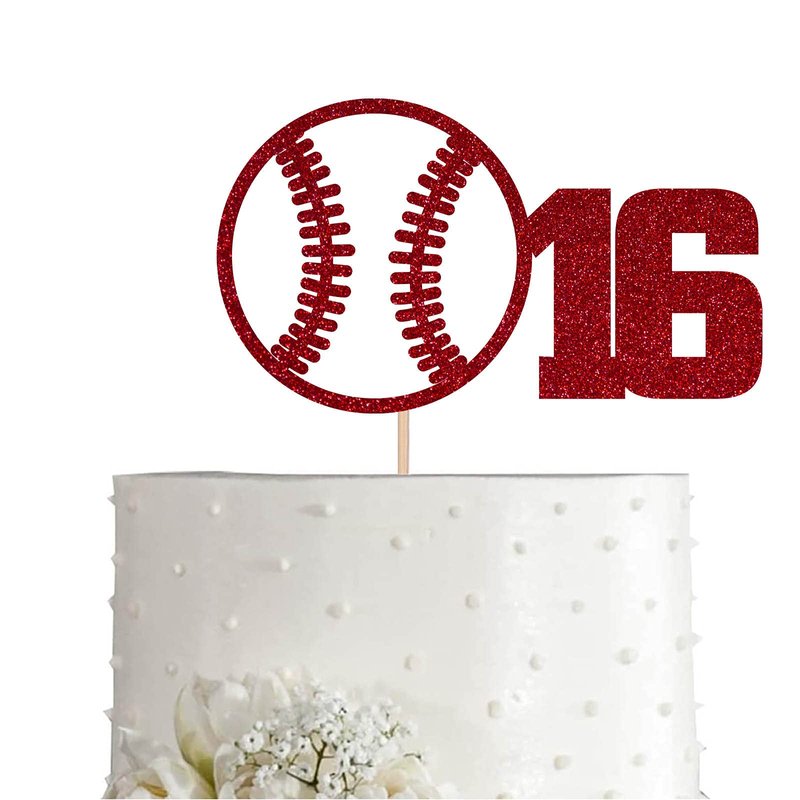 Red Baseball 16 Birthday Cake Topper, Red Glitter Happy 16th Birthday Party Decoration