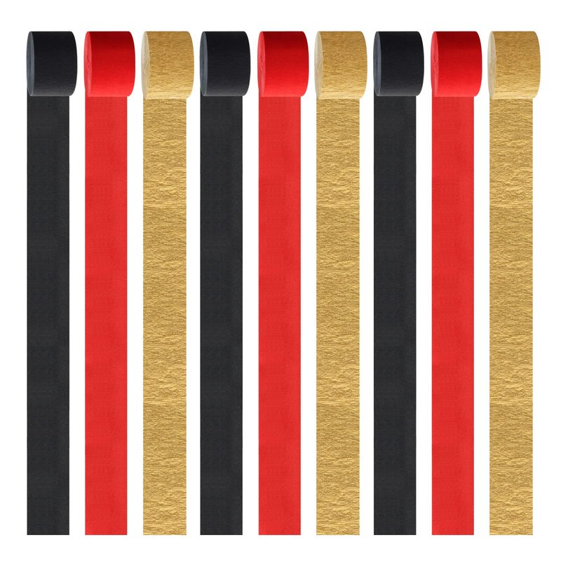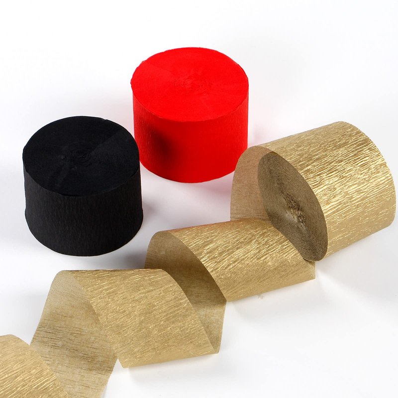 - 【Bright color】 Our crepe paper is available in 3colors, 3 rolls per color: red black gold.There is plenty of each color to really get creative and have some fun.