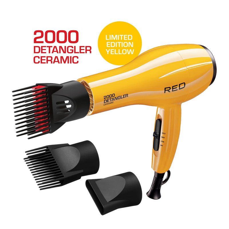 RED by KISS 2000 Ceramic Hair Dryer, Professional Salon Blow Dryer 3 Attachments Included, 2 Detangler Piks, 1 Air Concentrator (Yellow)