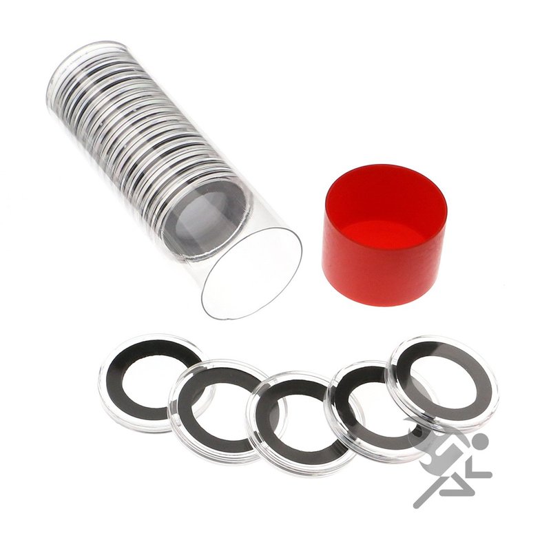 Red Capsule Tube & 20 Air-Tite 22mm Black Ring Coin Holders for 1/4oz Gold Eagles by OnFireGuy